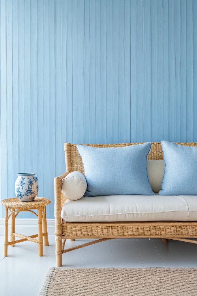 Select a matte or eggshell finish for the blue walls to keep the space feeling soft. Prepare surfaces with thorough cleaning and sanding, then tape edges carefully. Apply at least two coats for even coverage. Incorporate neutral textiles and decor, such as soft curtains, rugs, or ottomans, to complement the blue. Lighting plays a key role in emphasizing the harmony.