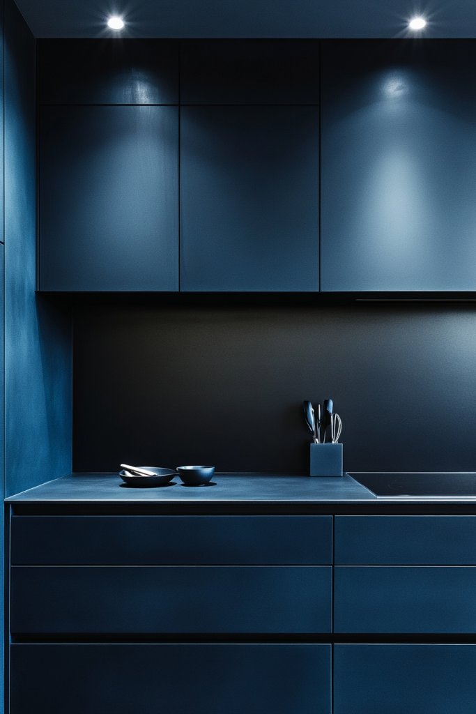 4. Matte Blue-black for a Sleek, Sophisticated Kitchen