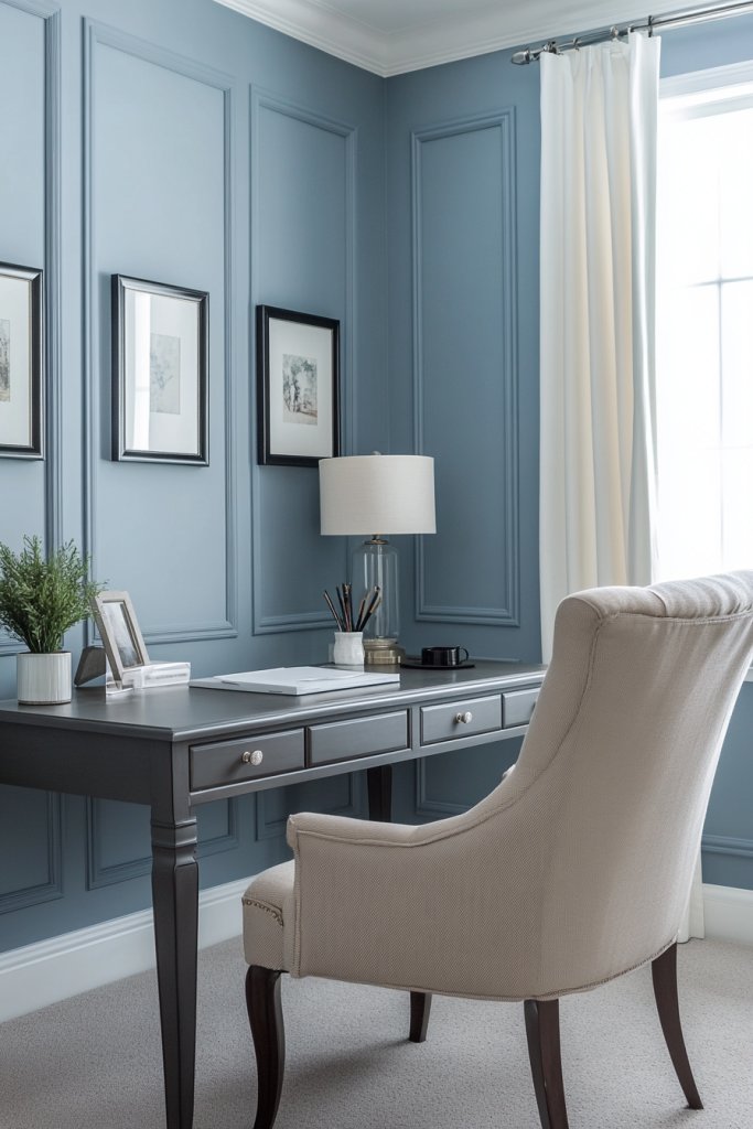 7. Sophisticated Blue-Grey for Elegant Home Offices