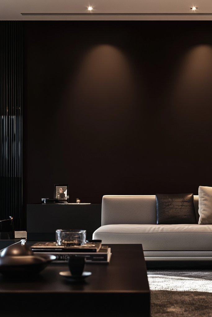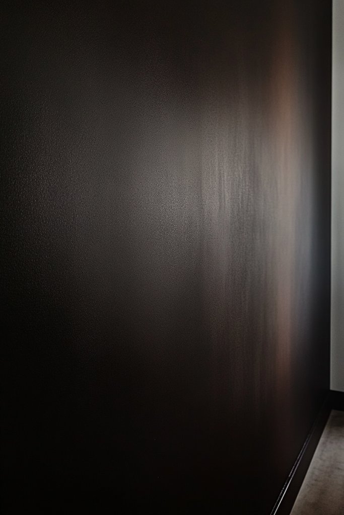 Imagine walking into a living room with a velvety matte black or rich dark brown wall behind your sofa. The finish absorbs light softly, giving the room depth and a moody vibe. The contrast with lighter furniture or metallic accents makes everything pop. You can almost feel the plush texture of the paint, adding tactile richness to the space. It’s like wrapping your room in a cozy, sophisticated cloak.