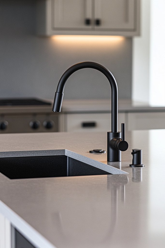 Imagine matte black handles on warm-toned wooden cabinets or black faucet fixtures against matte porcelain sinks. The finish absorbs light, reducing glare and creating a sophisticated, muted look. The contrast between matte black and wood or stone adds depth and modernity. It’s like giving your space a subtle, yet striking, finishing touch that’s both functional and stylish.