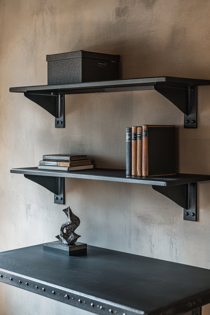 Blackened steel shelving adds a strong visual punch and a modern edge to any room. It’s a versatile, durable choice that ages gracefully and complements various styles. Once installed, your space will feel more organized and deliberately styled. It’s a clever way to mix utility with high-end design.