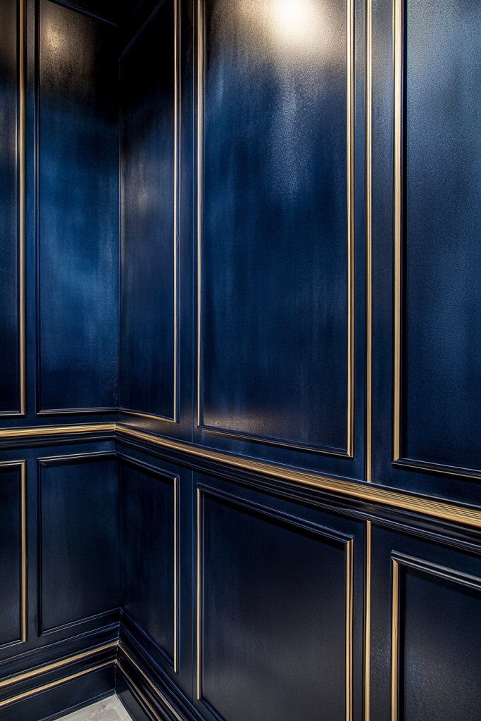 1. Navy Blue Wall Panels with Gold Trim for a Luxurious Accent Wall