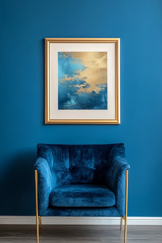 Start by selecting high-quality prints or digital artwork in shades of blue and gold. Frame them with sleek, gold-finished frames that match your decor style. Measure wall space carefully to arrange the prints in a balanced layout. Hang the artwork at eye level using appropriate wall anchors, ensuring everything is straight. Keep the frames clean and dust-free, and occasionally rotate artwork to keep the space fresh.