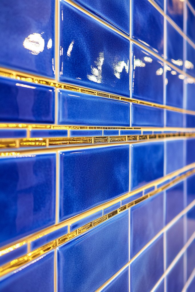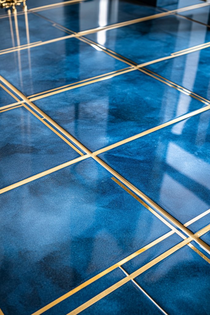 Imagine a floor covered in deep blue ceramic tiles, each one perfectly aligned with thin gold grout lines that shimmer subtly underfoot. The contrast creates a rich, textured surface that draws the eye and grounds the entire room. When combined with soft lighting and sleek fixtures, the floor becomes a statement piece that exudes elegance and craftsmanship. It’s like walking on a piece of art every day.