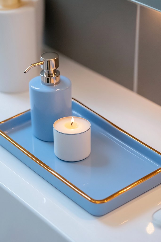 A beautiful blue and gold tray transforms clutter into a styled vignette, elevating your entire vanity. It’s a simple yet effective way to show off your taste and keep your space organized. When your essentials are displayed beautifully, you’ll feel more confident and put-together daily. Ready to elevate your routine with a touch of luxury? It’s easier than you think—and makes a big difference.
