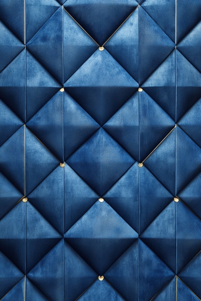 Visualize textured blue wall panels with subtle gold accents, arranged in a pattern that creates movement and interest. The textured surface catches the light differently throughout the day, adding dimension to your space. When illuminated by soft lighting, the panels shimmer with a luxurious glow that draws the eye and transforms the room into a gallery of style. It’s a dramatic yet refined feature that anchors your decor.