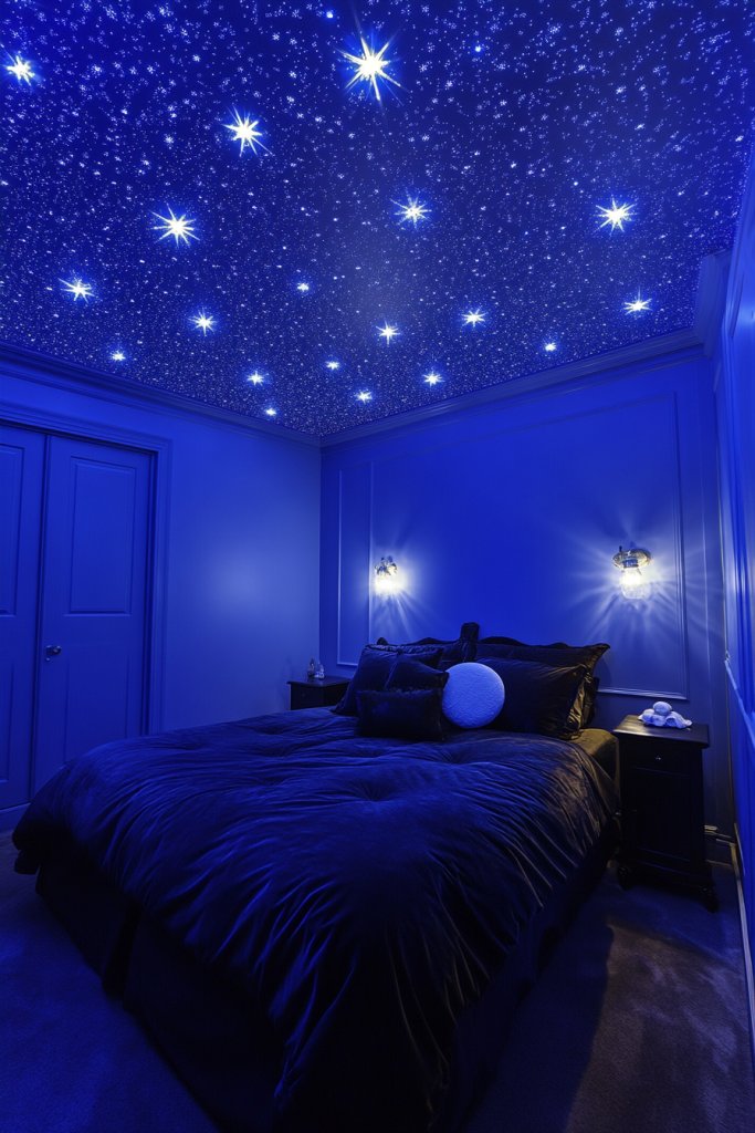 16. Twilight Blue Bedroom with Starry Night Ceiling Lighting