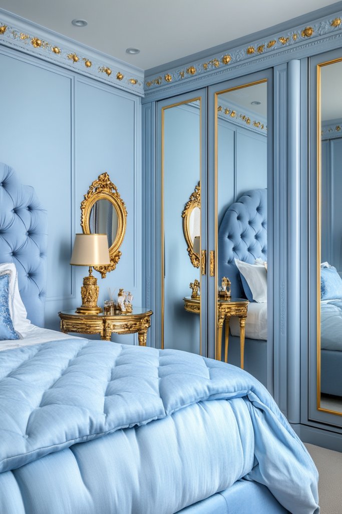 Ever wish your bedroom felt a bit more luxurious but don’t want to overhaul everything? Powder blue combined with gold accents offers an effortless way to elevate your space with elegance. It’s about creating a calm, sophisticated retreat that feels refined yet inviting. This combo is perfect for those who love a touch of glam without going overboard.