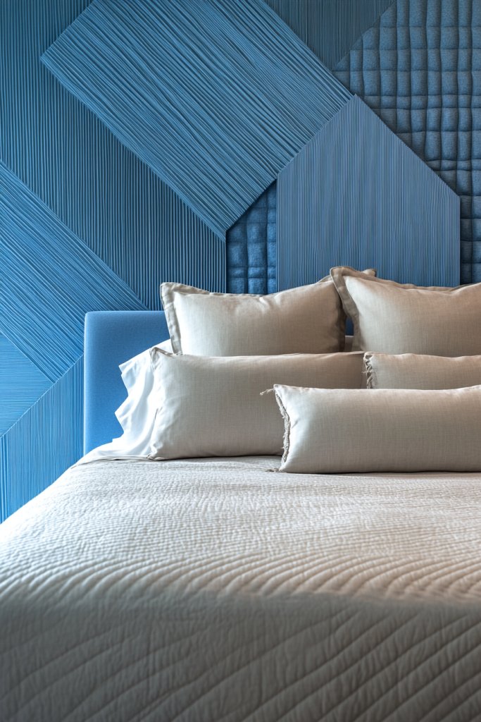 Tired of flat, boring walls that lack personality? Textured wall panels in varying shades of blue can add depth, dimension, and a calming effect to your bedroom. It’s an easy way to upgrade your space without a full renovation. Plus, it creates a subtle visual interest that’s perfect for a serene retreat.