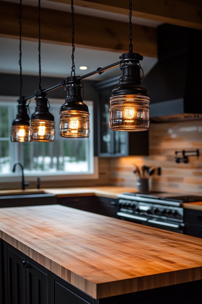 12. Add Pendant Lighting with Industrial or Mason Jar Shades