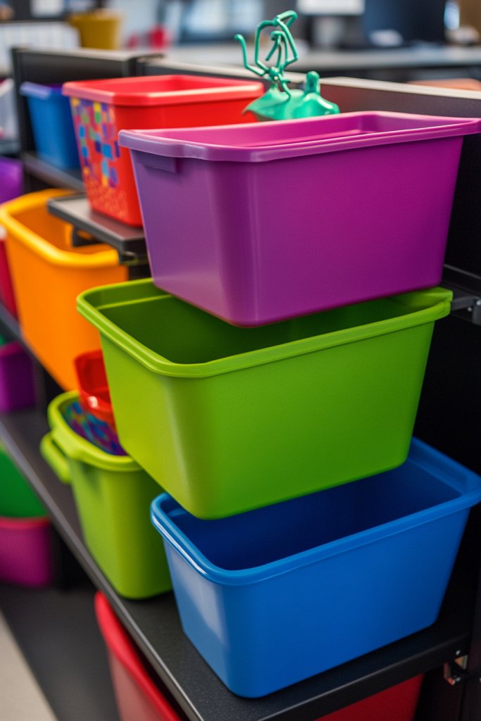 Brightly painted storage bins turn mundane clutter into a lively display. They reflect your creativity and make organization fun. Plus, upcycling saves money and helps the planet. Ready to give your storage a colorful makeover?
