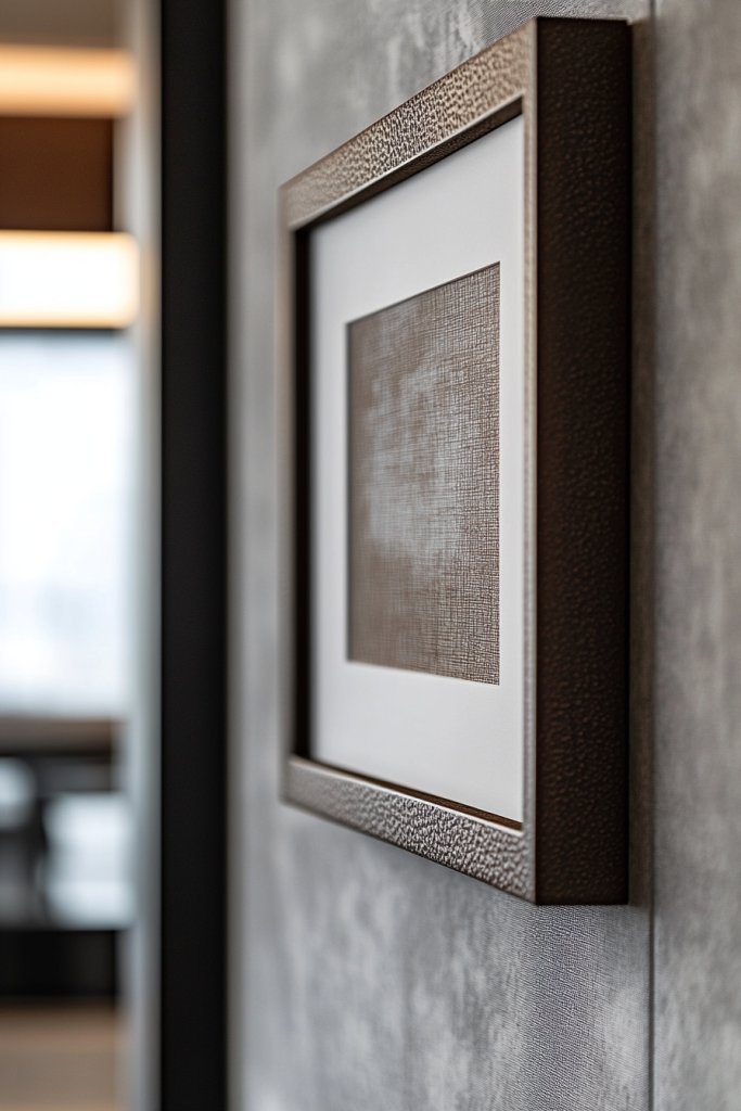 Imagine bold typographic prints with inspiring quotes framed in sleek metal or wood. Or abstract art pieces with vibrant splashes of color that complement your decor palette. These pieces hang neatly on your wall, creating focal points that reflect your style. The combination of art and frame elevates your workspace instantly.