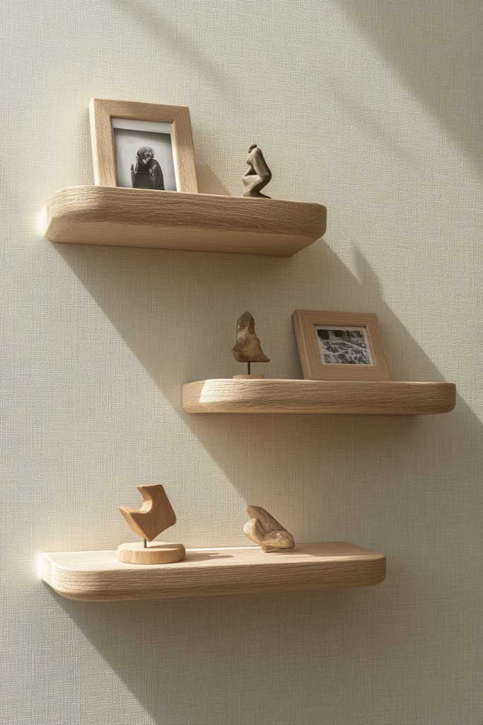 Use different materials—wood, acrylic, or metal—for a variety of styles. Arrange the shelves asymmetrically for a modern feel, or symmetrically for a more orderly look. Paint or decorate the shelves to match your decor theme. Change contents seasonally or when you want a fresh look.
