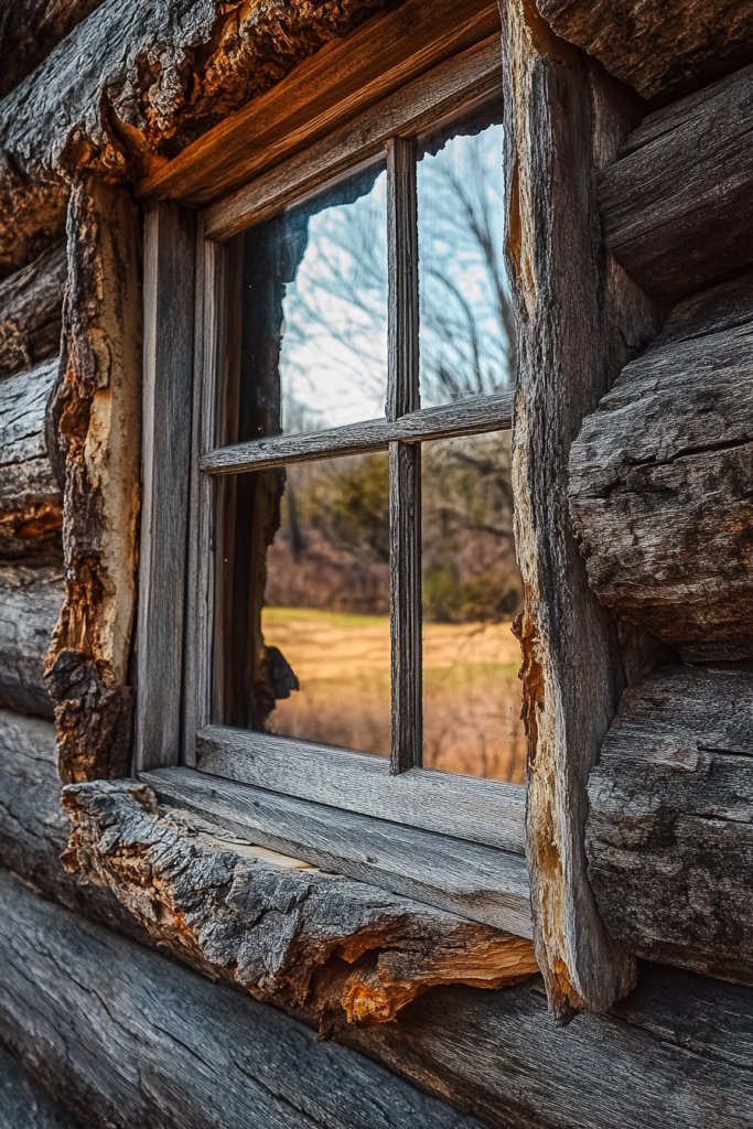 Imagine rough-sawn logs or lumber with bark still attached, framing your window in all its natural glory. The bark’s texture and uneven edges add a wild, organic feel that’s impossible to fake. The natural imperfections make each window unique, like a piece of the forest captured inside your home. Sunlight filtering through the bark accentuates its rugged beauty.
