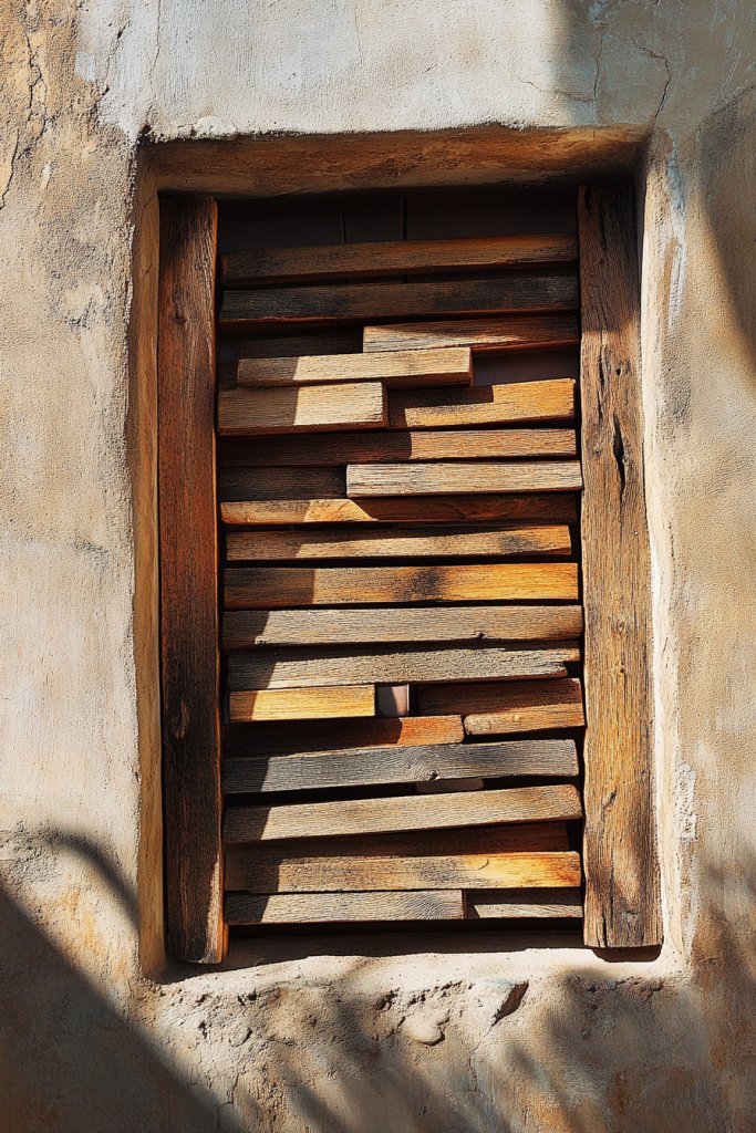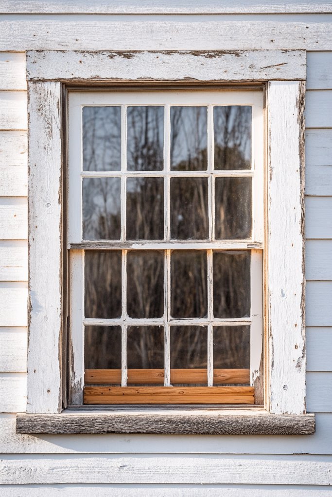 Imagine weathered, textured wood with knots and imperfections that speak of years gone by. The rough-hewn planks frame your window, adding warmth and character. The grain is rich, with faded paint or natural patina that looks like it’s been there forever. When sunlight hits the reclaimed wood, it enhances its rugged beauty, making your window a focal point full of personality.