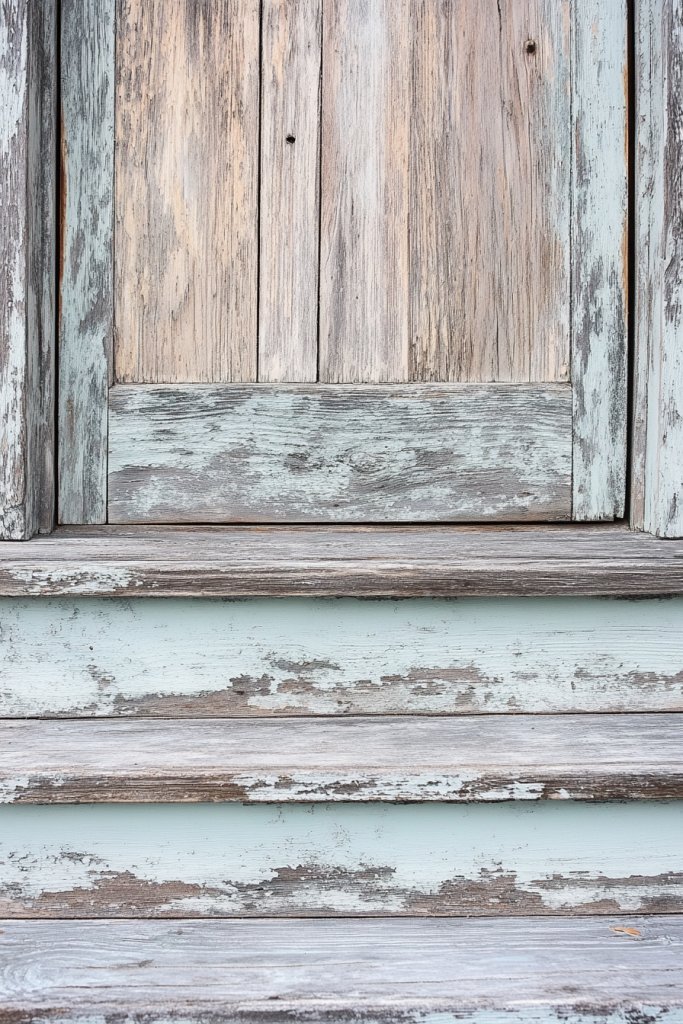 Picture reclaimed wood with a chalk paint coating in a soft, muted tone—think blush, cream, or dusty blue. The matte finish creates a velvety surface that invites touch. Light distressing reveals glimpses of the wood’s natural grain underneath, adding layers of age and charm. The muted palette pairs beautifully with floral textiles or vintage hardware, enhancing the romantic, vintage feel.