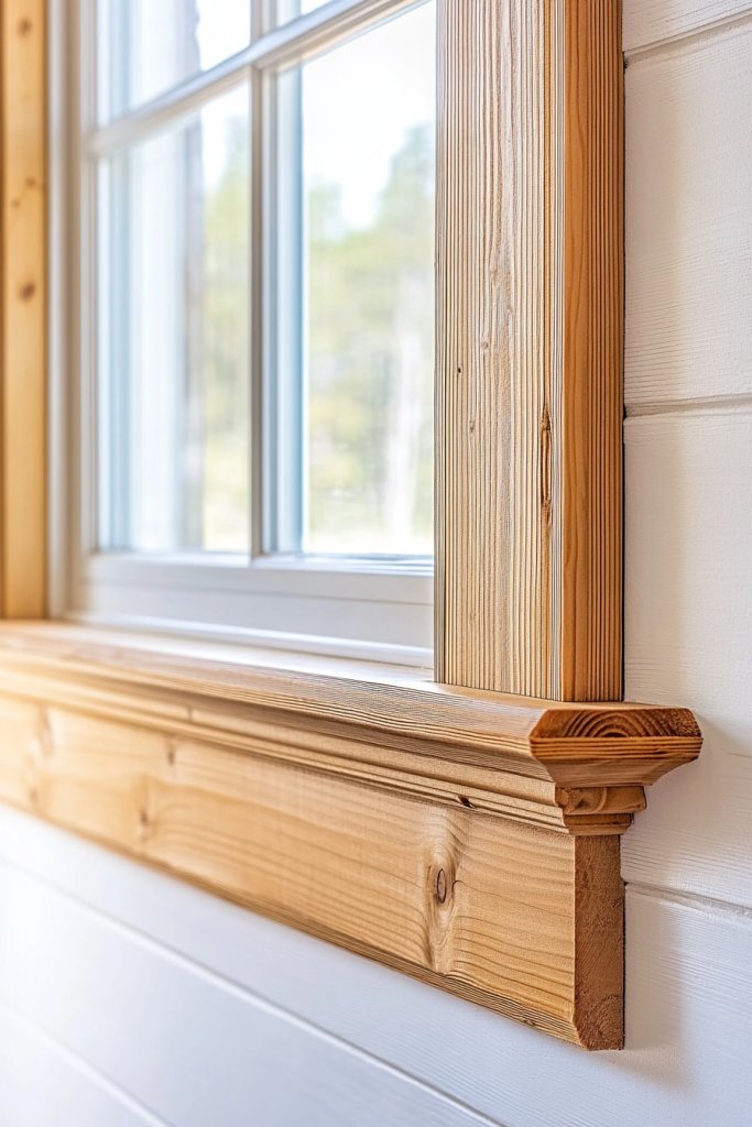 Visualize narrow, vertical beadboard panels with a natural or lightly stained finish framing your window. The tiny, rounded beads create a rhythmic pattern that adds visual interest without overpowering the space. The natural wood grain and smooth surface exude warmth and craftsmanship, inviting touch and appreciation. It’s a gentle reminder of handcrafted simplicity.