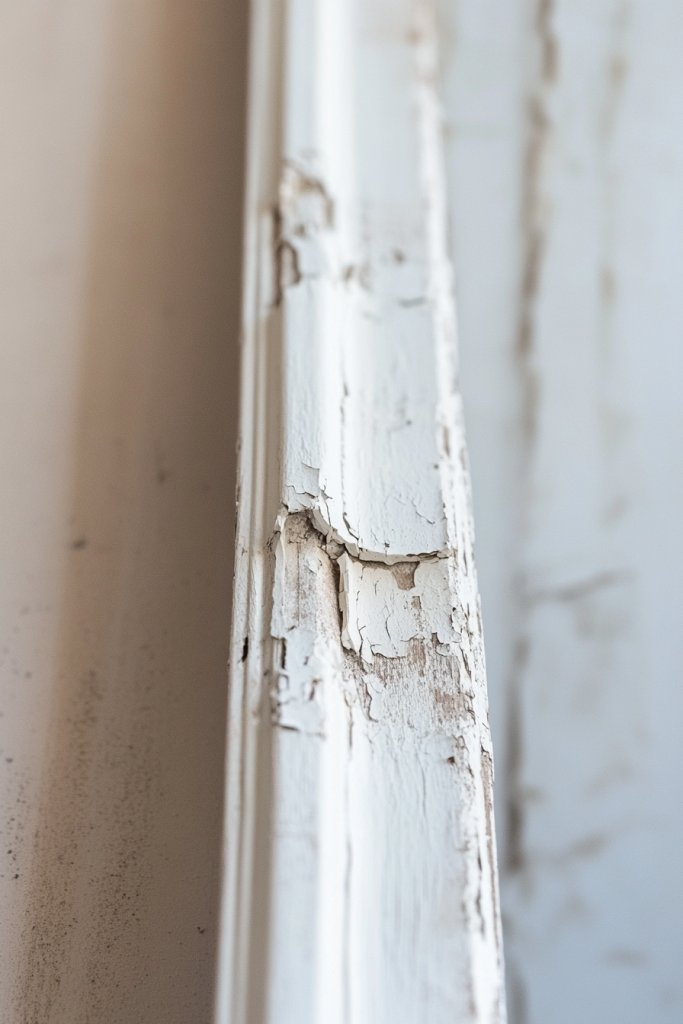 Picture thin, white-painted trim with intentional distressing—chipped paint, worn edges, and subtle unevenness. The finish reveals glimpses of the underlying wood or primer, adding depth and character. The overall effect is a soft, vintage charm that pairs well with faded textiles or rustic decor. It’s a delicate balance of clean and worn that feels effortlessly stylish.