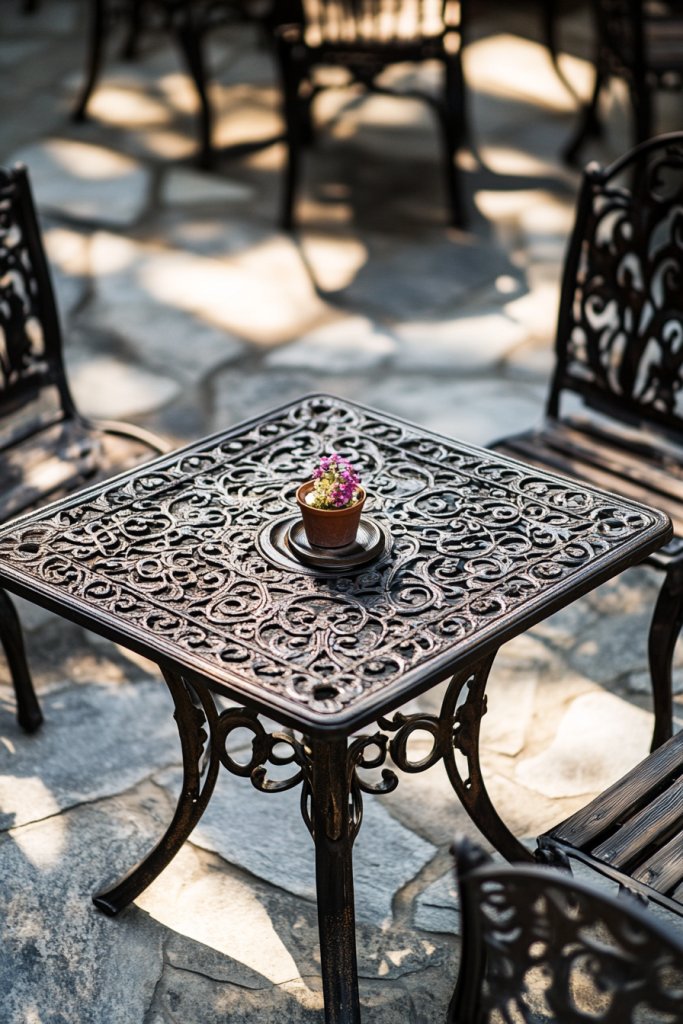 Tired of plastic-looking tables that ruin the rustic vibe of your outdoor space? A vintage-style metal patio table offers durability and charm rooted in nostalgia. It’s the perfect centerpiece for relaxed outdoor meals or casual chats. Plus, it’s tough enough to handle whatever your backyard throws at it.