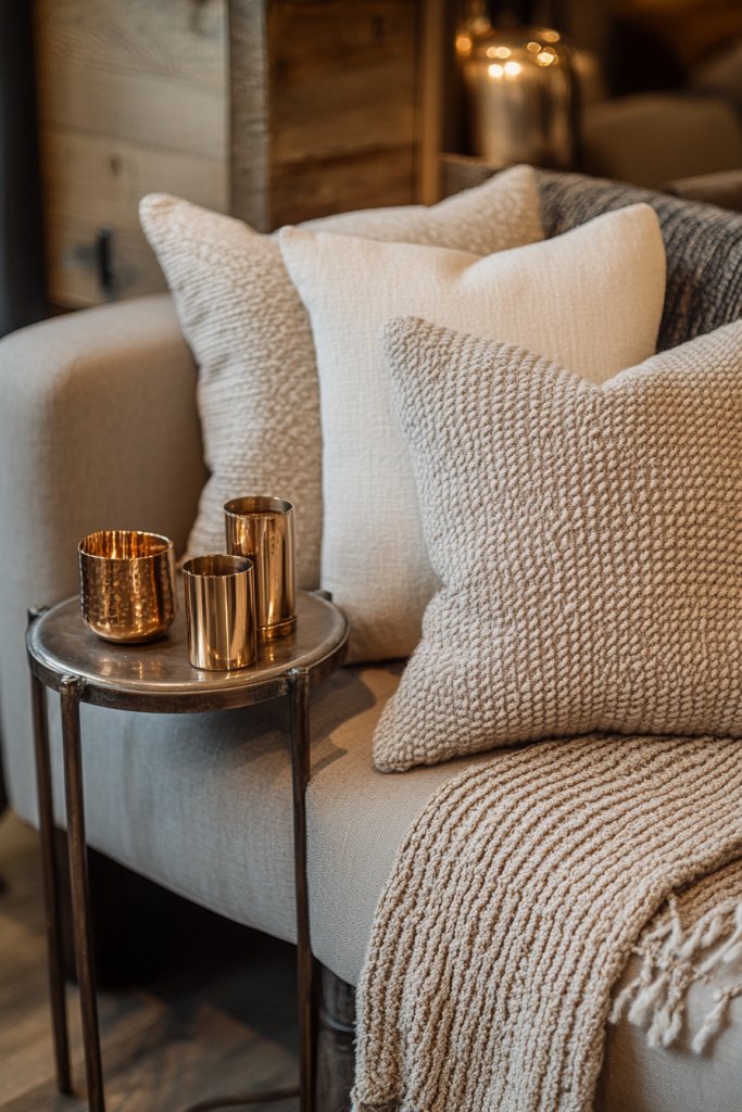 Personalize with metallic-finished picture frames, or small handcrafted metal sculptures. Layer textiles in different textures and shades—think velvet, linen, or faux fur— to add richness. Incorporate personal collectibles or heirlooms with metallic details for a sentimental touch. Mix and match finishes carefully to create a cohesive yet eclectic look that feels warm and modern.