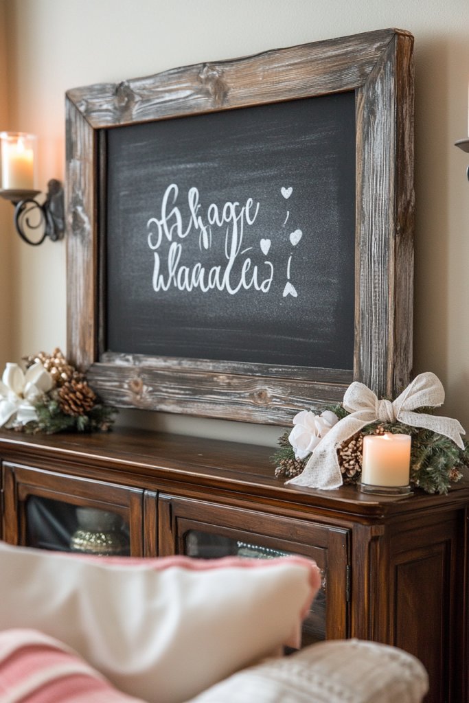 A framed chalkboard or sign adds a heartfelt touch to your farmhouse decor, making your space feel warm and welcoming. It’s a simple project that packs a lot of personality and charm. Updating the message seasonally or for special occasions keeps your home feeling fresh and personal.
