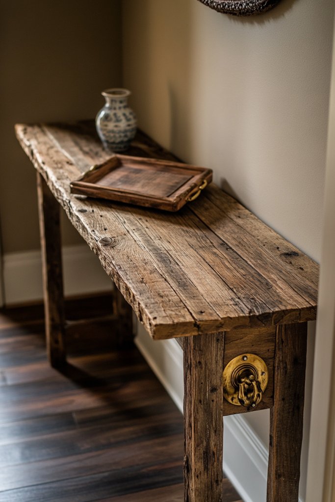 1. Reclaimed Wood Console Table with Vintage Hardware