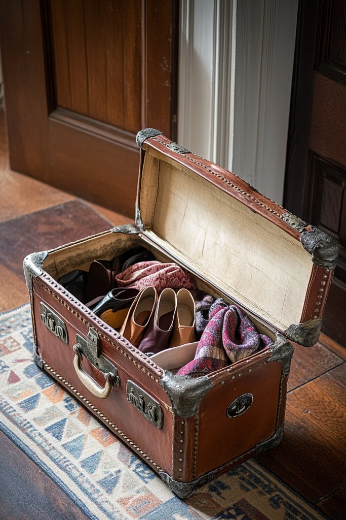 14. Vintage Suitcase or Trunk as Entryway Storage