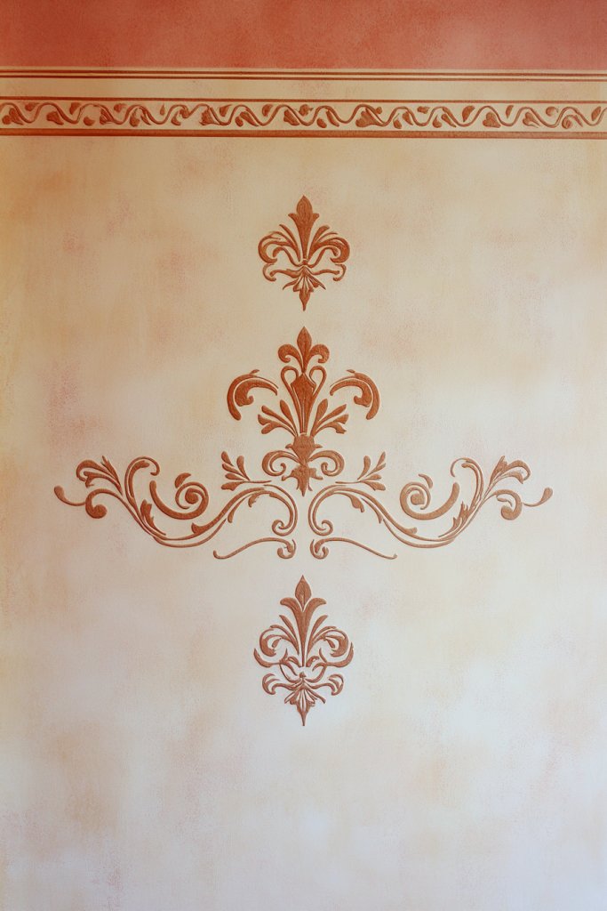 Imagine delicate fleur-de-lis patterns or intricate floral swirls gracefully adorning your wall. The soft, muted tones of the stencil contrast beautifully with neutral backgrounds, creating a subtle yet sophisticated look. The textured strokes of your brush give the design a handcrafted, authentic feel. It’s like having a piece of vintage French wallpaper with a personal touch.