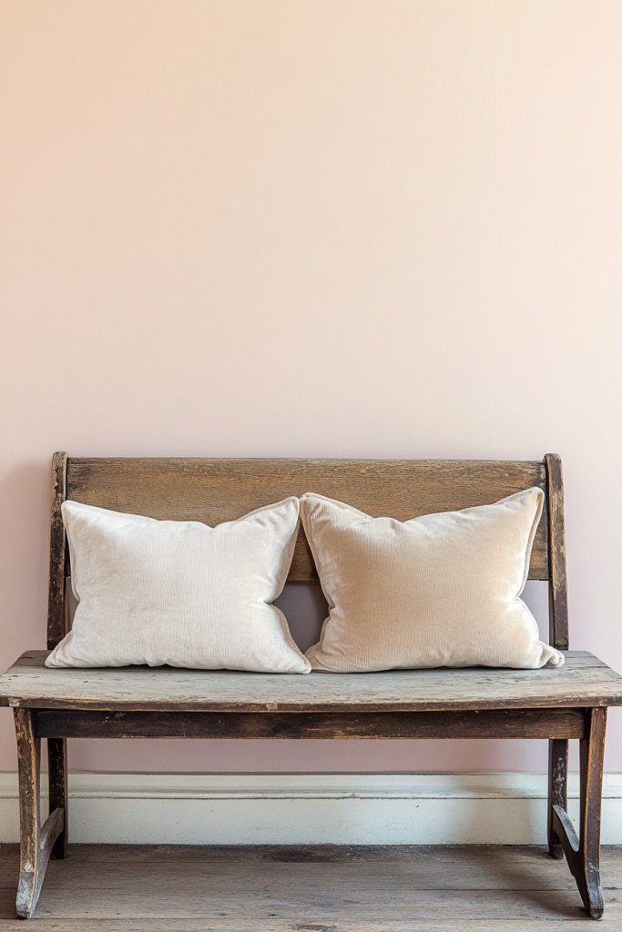 Choose a vintage or distressed wood bench that fits your space and style. Select pillows with removable covers for easy cleaning. Place the pillows strategically to create visual balance, and layer different textures for interest. Use high-quality, durable fabrics to withstand daily use. If the bench doubles as seating, ensure it’s sturdy enough to handle regular weight. Add a small rug underneath to anchor the space.