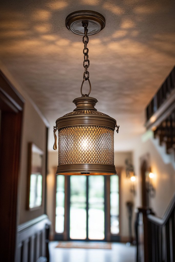 Select a fixture that matches your decor’s metal tones—antique brass or black wrought iron work well. Measure the ceiling height to ensure the pendant hangs at an appropriate level—about 30-36 inches above the floor or console. Install a ceiling hook or mounting plate, following safety guidelines for electrical work. Use a dimmer switch for adjustable lighting and ambiance control. Replace bulbs with vintage-style filament LEDs for authenticity and efficiency.