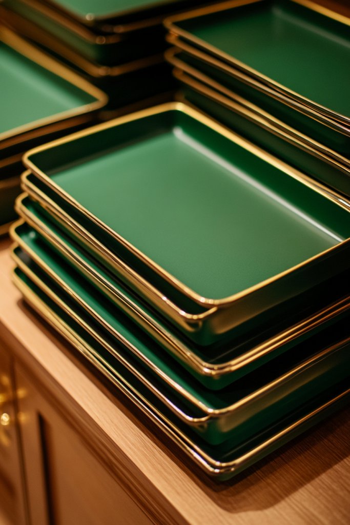16. Arrange Green-Lined Serving Trays for a Cohesive Look