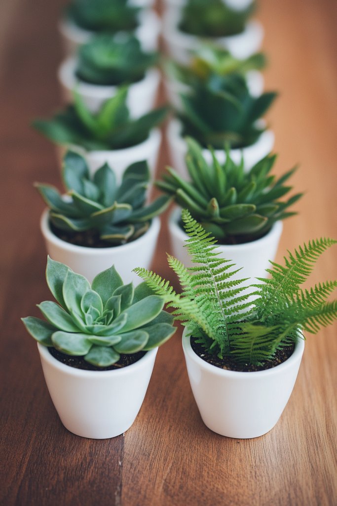 For a minimalist look, use uniform small pots in neutral colors. If your style is boho, mix and match different pots and containers for a curated, eclectic vibe. During winter, replace ferns with evergreen sprigs or holly for seasonal flair. For outdoor patios, large potted succulents can act as focal points, while small tabletop arrangements suit cozy indoor settings.