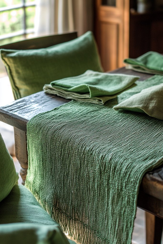 Ever feel like your dining space is missing that warm, inviting touch? Sometimes, a simple swap of textiles can make all the difference. Layering green fabrics with natural fibers creates a cozy, tactile environment that encourages lingering over meals. If your decor feels flat or sterile, this idea offers a quick, stylish fix.