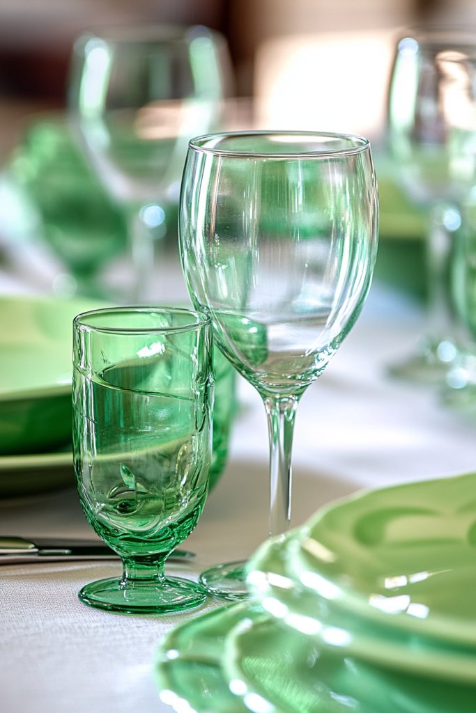 Select high-quality glassware that fits your needs and budget—consider lead-free options for safety. Coordinate with your existing table linens and accessories to create a harmonious look. Use matching or complementary green dinnerware for a polished appearance, or mix and match for a more casual, eclectic style. Store your glassware carefully to prevent chips or cracks. Incorporate stacking or tiered serving trays in green for practical and attractive presentation.