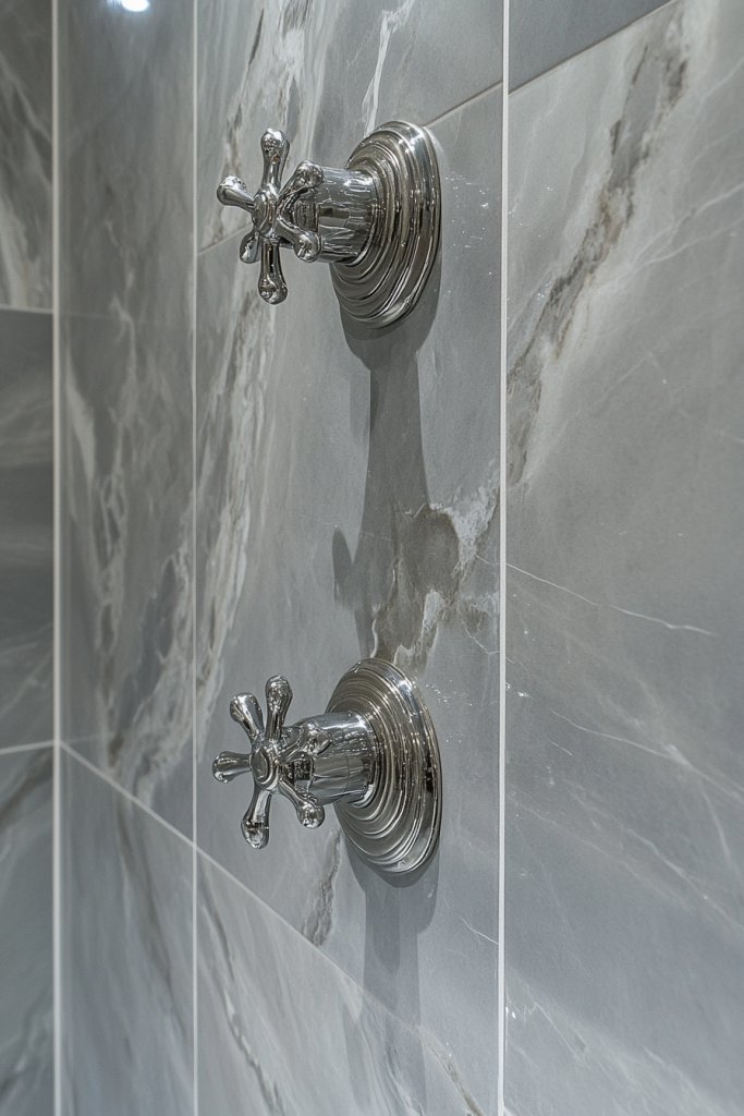 9. Creating a Focal Wall with Patterned or Marbled Grey Tiles