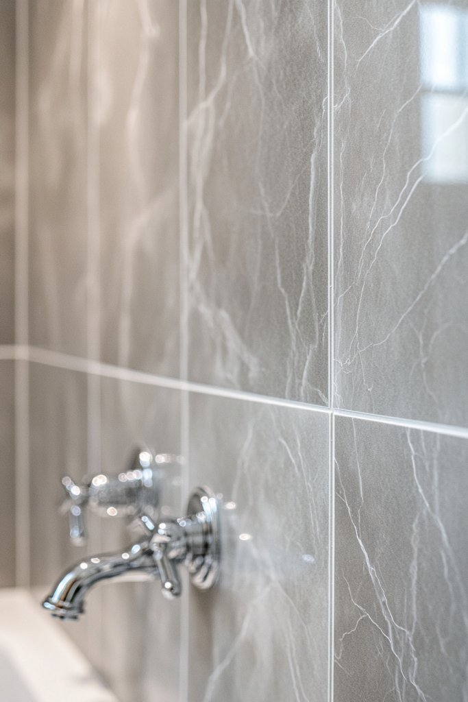 15. Utilizing Grey Tiles with Subtle Veining for a Marble Effect