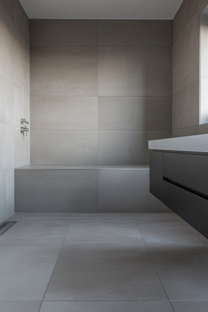 1. Sleek Large-Format Grey Tiles for a Seamless Modern Look