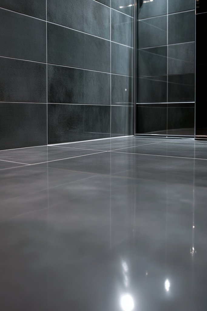 3. Matte Grey Floor Tiles Paired with Glossy Wall Surfaces