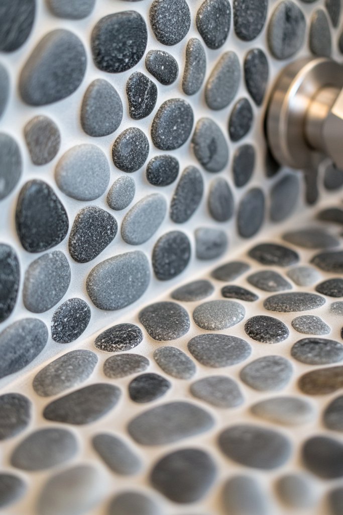 7. Incorporating Grey Pebble or Mosaic Tiles for Natural Texture