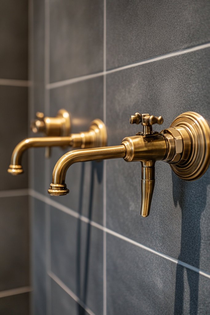 8. Combining Grey Tiles with Warm Metallic Fixtures for a Luxe Touch