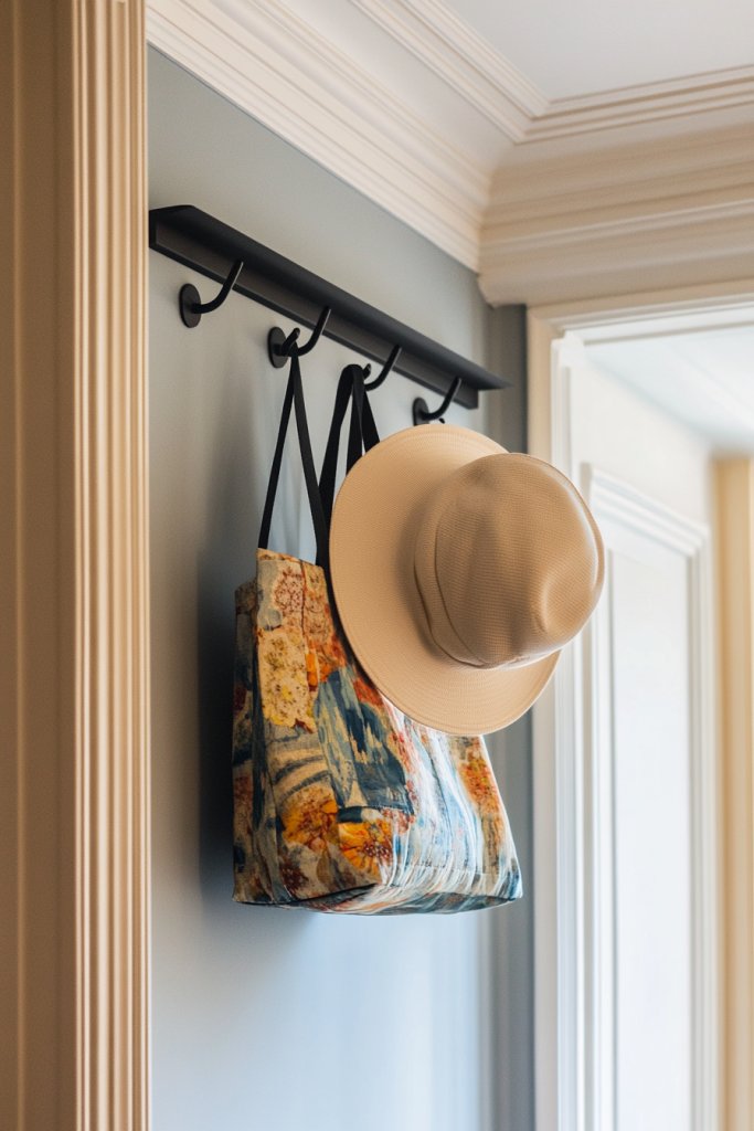 Ceiling space is often overlooked, yet it’s prime real estate for storage. Overhead ceiling hooks allow you to hang lightweight items like hats, tote bags, or umbrellas without taking up wall or floor space. It’s a clever way to keep essentials out of the way yet within reach. Plus, it adds a touch of visual interest overhead.