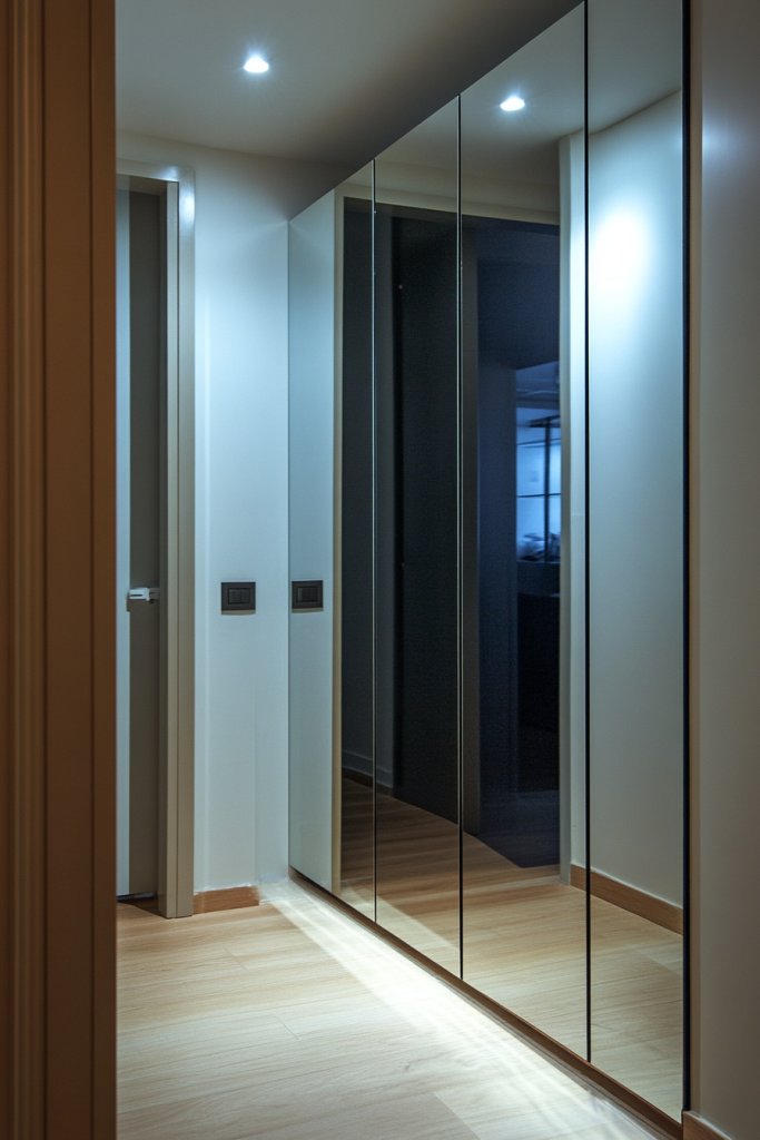 Cluttered hallways can make even the most stylish home feel cramped. Combining storage with a mirror not only saves space but also creates an illusion of openness. Mirrored cabinets are perfect for hiding essentials while adding a functional design element. They’re a smart, stylish choice for small or narrow hallways.