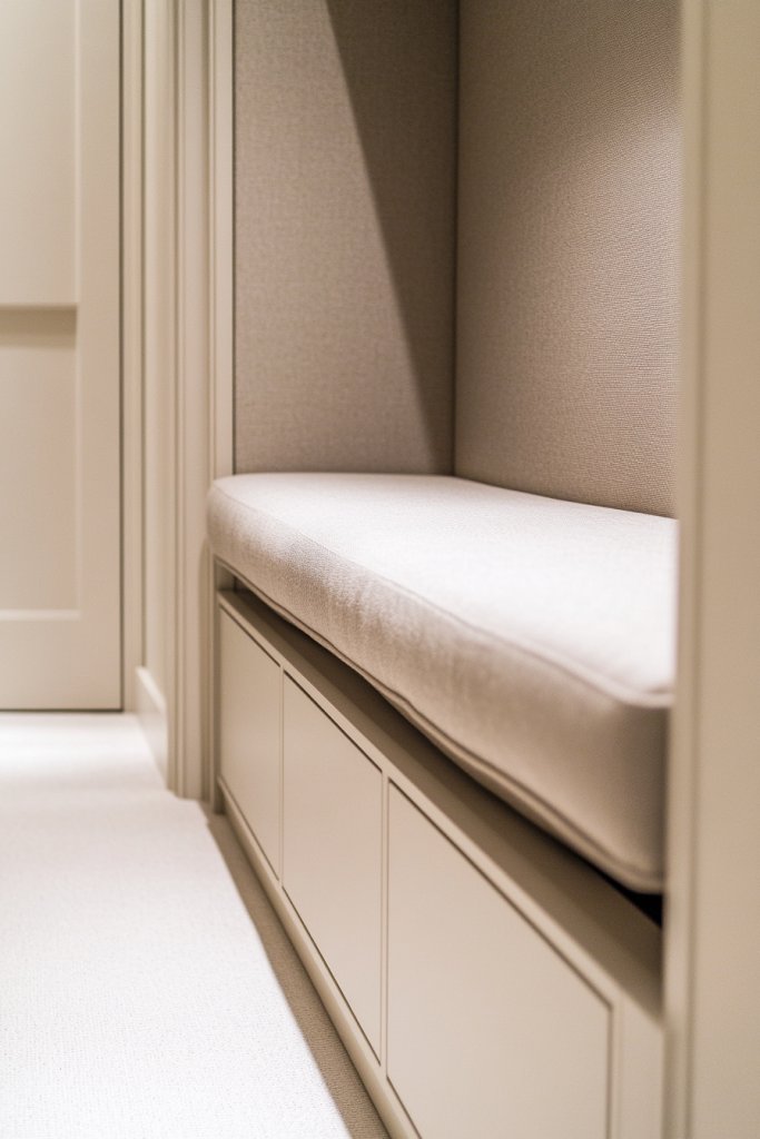 A narrow hallway often lacks seating, and clutter piles up without a designated spot. A hidden storage bench solves both issues, providing a cozy seat and a discreet place to stash shoes, outdoor gear, or seasonal items. It’s a dual-purpose solution that elevates your space and keeps it tidy.