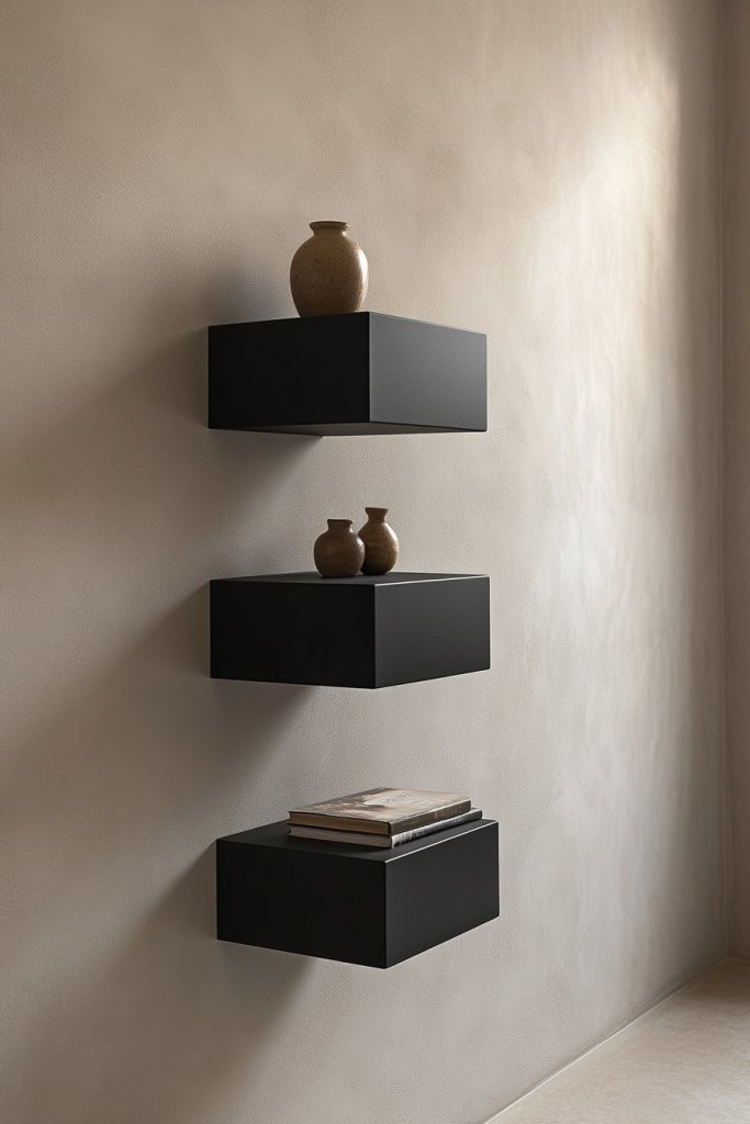 Imagine sleek, floating shelves hugging the wall, painted in a soft matte finish that blends seamlessly with your decor. They hold stacked books, decorative baskets, or neatly folded textiles, creating a tidy visual flow. The shelves cast subtle shadows, adding depth and dimension to the hallway. It feels like a curated gallery, but for everyday essentials.