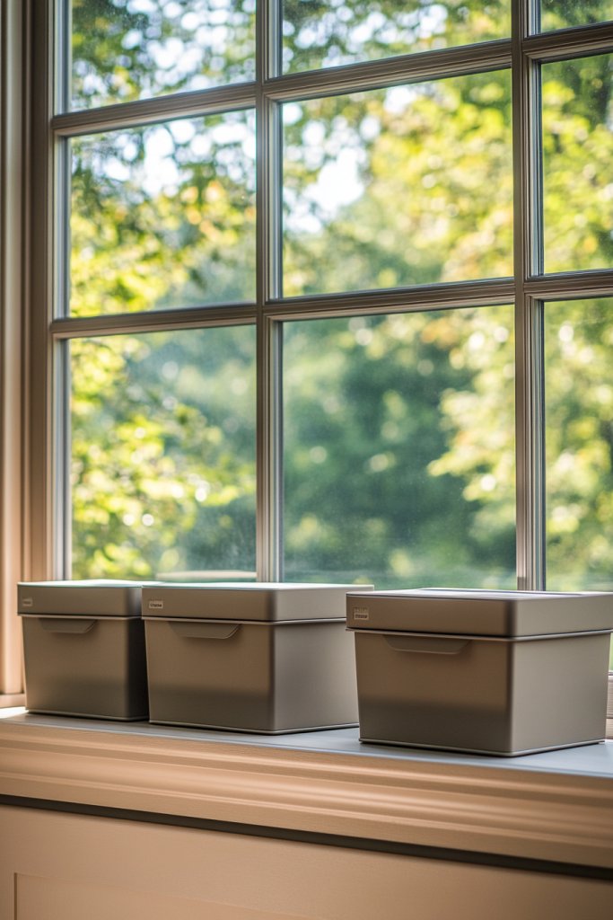 17. Creative Use of Under-Window Space with Storage Boxes