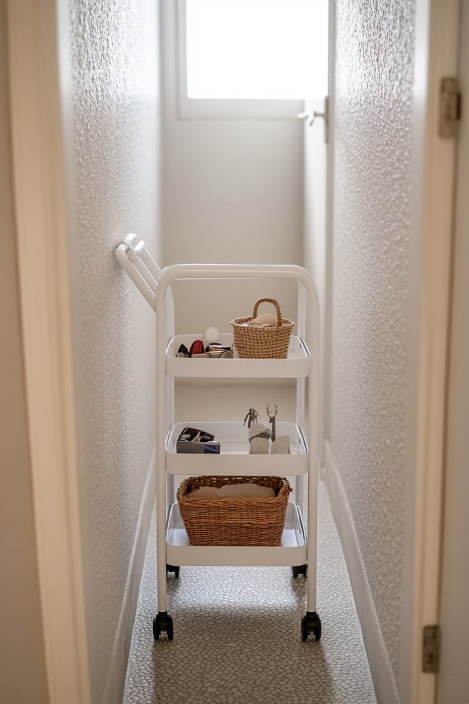 Sometimes you need storage that moves with you—literally. Narrow rolling carts offer a versatile solution for organizing small items, accessories, or cleaning supplies. They’re perfect for tight hallways or corners where fixed furniture just feels bulky. Plus, they add a touch of industrial chic to your decor.