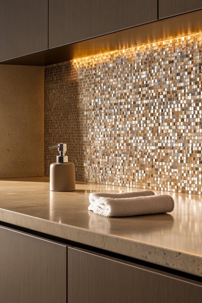14. Adding a High-Quality Backsplash in Natural Stone or Metallic Tiles