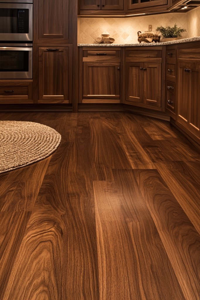 Imagine rich, deep tones of oak or walnut underfoot, with a smooth finish that catches the light beautifully. The natural grain adds character, while the sturdy surface withstands daily wear and tear. The seamless planks create a cohesive look that ties your kitchen together, making it feel more inviting and upscale. The warm hues contrast beautifully with sleek cabinetry and modern appliances.