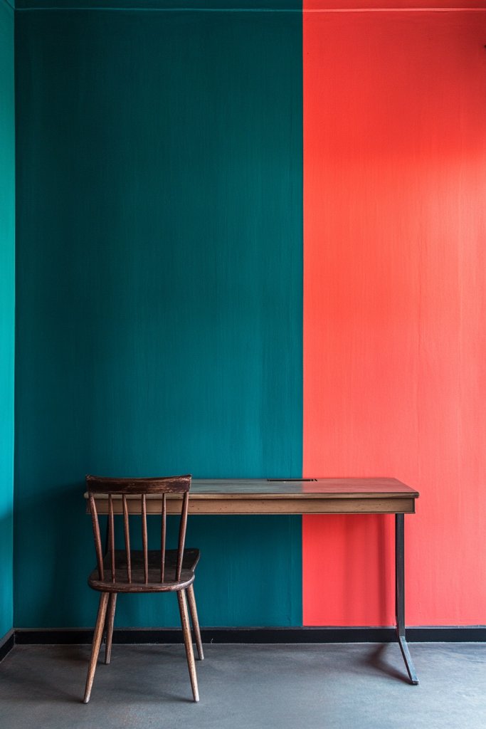 Imagine a wall painted in a vivid, contrasting hue—bright red, deep navy, or a vibrant yellow—cut sharply across a neutral backdrop. The color block defines your workspace as a dedicated area, even within open plans. When natural light hits the bold hue, it energizes the room, making the space feel lively and purposeful. The clean lines of the blocks add a modern, graphic aesthetic.